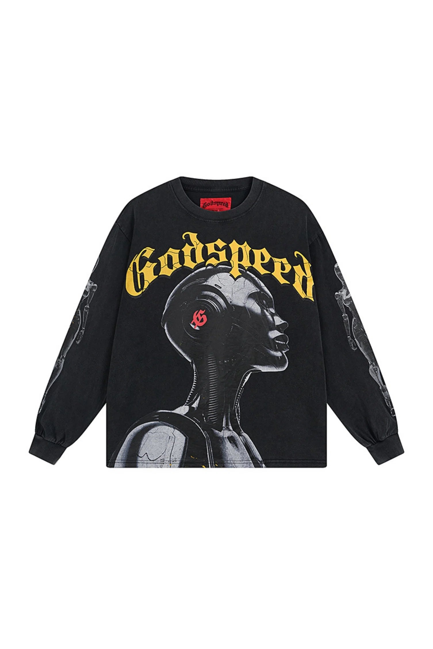 Embark on a journey through the cosmos with our (Godspeed's Future Planet Robot Black Shirt);With Brain . More than just clothing, it’s a portal to interstellar fashion, blending comfort and style seamlessly. Let your wardrobe transcend Earthly limits and explore the universe with every wear.